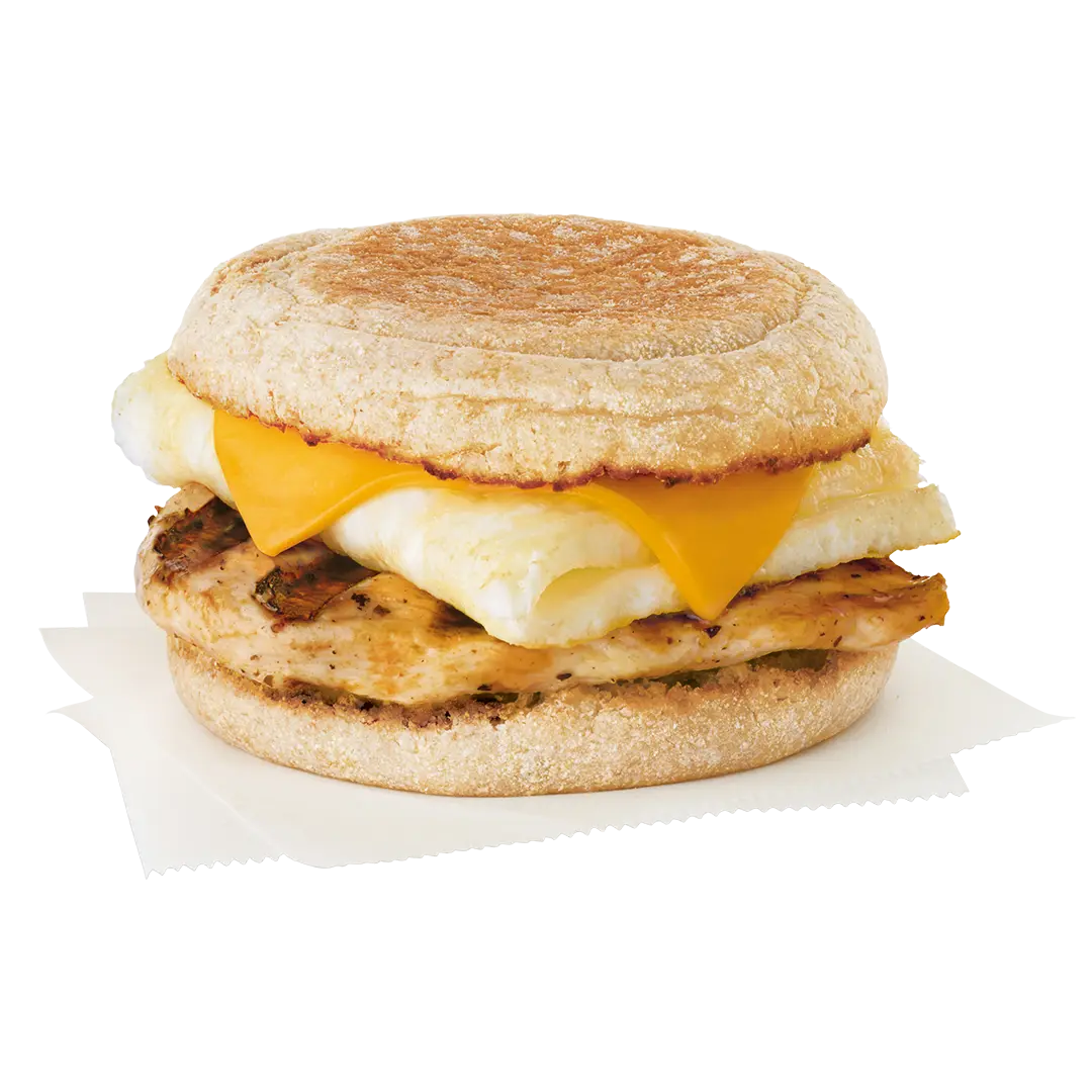 Grilled chicken breast, Egg whites, American cheese, Multigrain English muffin